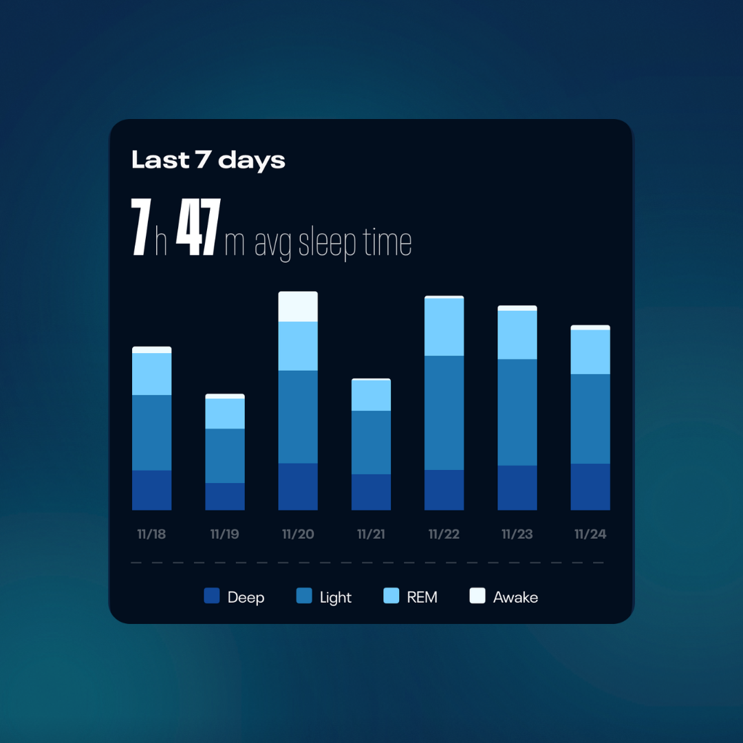 Sleep better, recover faster. Track your sleep stages and quality every night so you wake up ready to go.